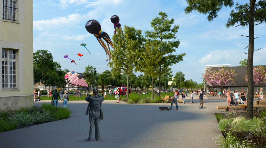 Au fil de l’étude, notre réflexion s’est progressivement étendue au-delà du seul quartier de Corbeville. Il apparaît en effet que les représentations produites par les institutions, les documents d’aménagement et les images-projets excèdent largement ce cas particulier : elles contribuent à façonner un imaginaire global du Plateau, qui s’impose à l’ensemble du campus.