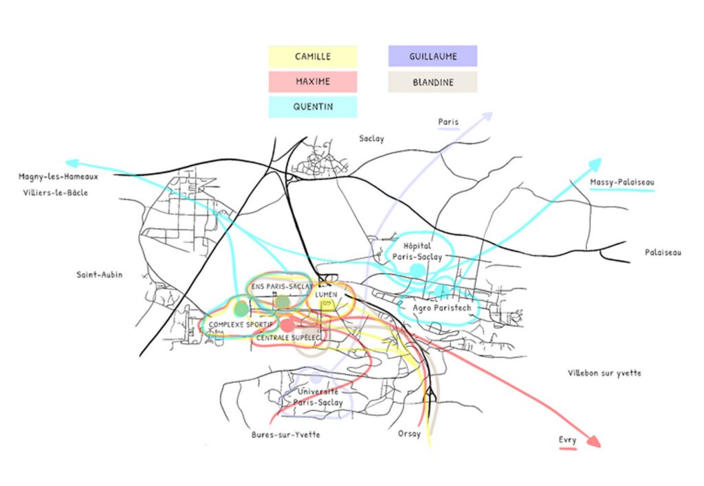Dans l’ensemble, le Plateau de Saclay est décrit à travers des ressentis comme l’oppression ou la désolation, et perçu avant tout comme un lieu de transit, plutôt qu’un espace d’appartenance ou d’habitation.